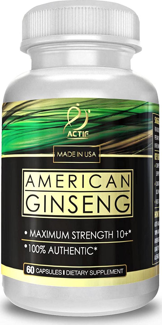 Actif American Ginseng - 100% Authentic 10 Year Old Ginseng, Non-GMO, 500mg - Made in USA