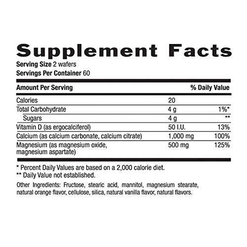 Country Life Cal-Snack Chewable Calcium With Magnesium 1000mg:500mg:50 I.U.Vitamin D(milk free)(vinilla orange flavor), 120-Wafers