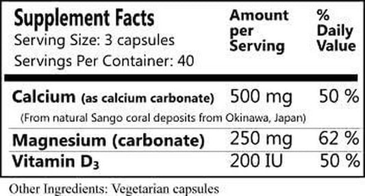 Daily Manufacturing Coral Calcium, Magnesium and D3 (Sango) 120 Capsules