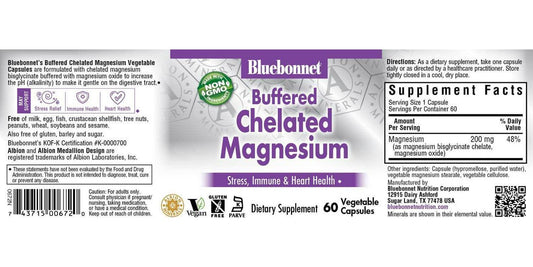 Bluebonnet Nutrition Albion Buffered Chelated Magnesium 200 mg, Magnesium Oxide, Stress Relief, Vegan, Non GMO, Gluten Free, Soy Free, Milk Free, Kosher, 60 Vegetable Capsules, 1 Month Supply