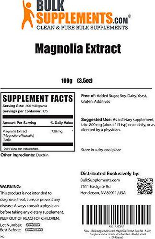 BulkSupplements.com Magnolia Extract Powder - Sulforaphane Supplement - Magnolia Tree Extract - Magnolia Bark Extract - Sulforaphane Powder - Herbal Supplement (100 Grams - 3.5 oz)