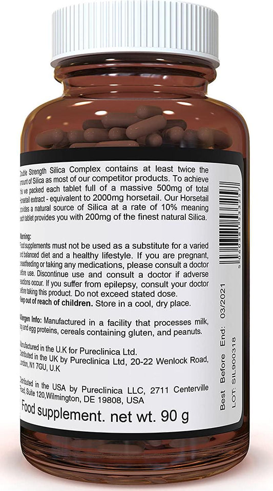 Double Strength Silica Complex - 3 Month Supply! (500mg Horsetail Extract x 90 Tablets) SKU: SIL90