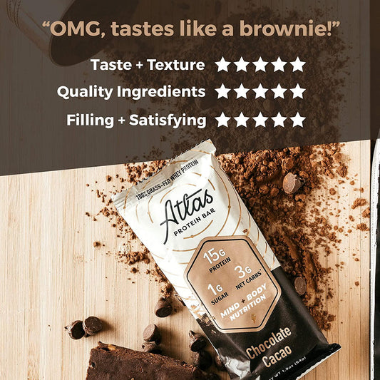 Atlas Mind + Body Keto Protein Bar - Peanut Butter Chocolate Bundle - Low Carb Protein Bars - High Fiber Bars - Low Sugar Meal Replacement Bars - Organic Ashwagandha (20 Count)