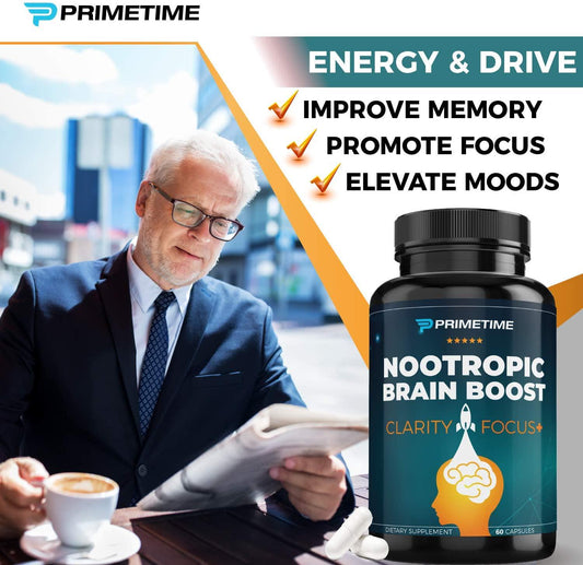 2 Pack -PrimeTime Sports Brain Boost Nootropic - Focus, Memory, Concentration - Men and Women - 60 Total Capsules