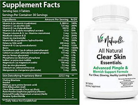 Acne Vitamins & Acne Supplements for Acne Treatment - Acne Pills & Acne Vitamin Supplements for Cystic Acne Treatment - Face, Back, Body & Hormonal Acne Treatment for Teens, Women & Men - 90 Pills