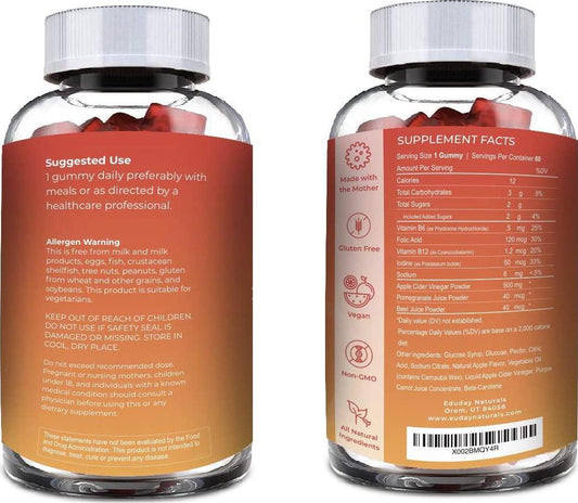 Apple Cider Vinegar Gummies by Euday Naturals | ACV Gummies for Women and Men | Non GMO, Vegan and Gluten Free Dietary Supplement | Halal and Kosher | Gummy | 60 Count