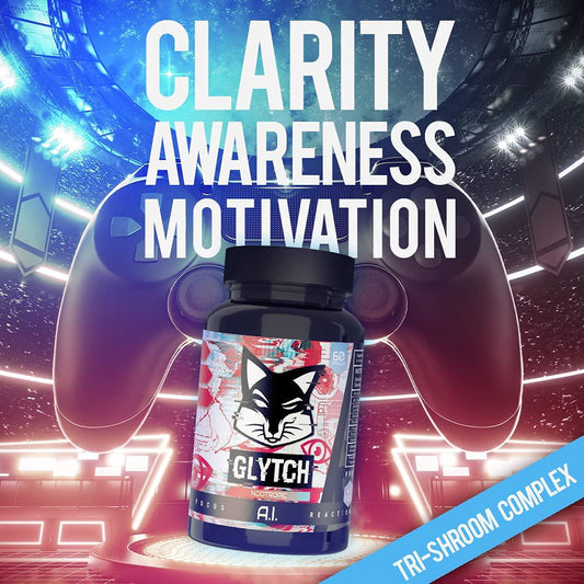 GLYTCH A.I Nootropic | Brain Pills for Gamers, Students, Esports | Enhance Reaction, Alertness, Mental Clarity, Concentration, Motivation | Unique Tri-Shroom Blend Made in The USA | 60 Capsules