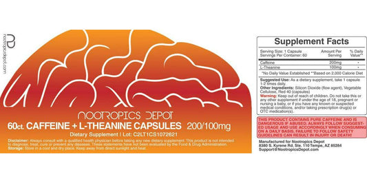 Caffeine and L-Theanine Capsules | 60 Count | Contains 200mg of Caffeine and 100mg of L-Theanine | Natural Nootropic Supplement | Energy Booster | Mental Focus + Alertness | Coffee Alternative