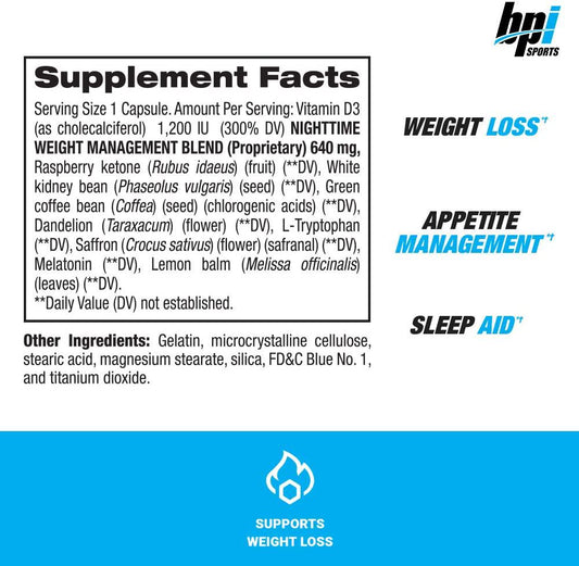 BPI Sports Nite Burn Nighttime Weight Management Formula, 640 MG, 30-Count
