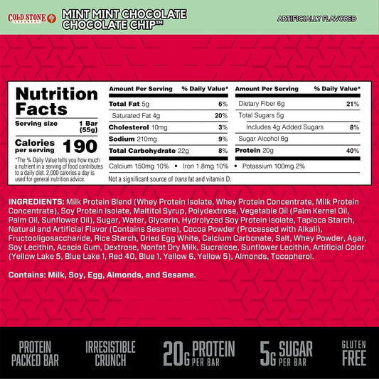 BSN Protein Bars - Protein Crisp Bar by Syntha-6, Whey Protein, 20g of Protein, Gluten Free, Low Sugar, Cold Stone Creamery Mint Mint Chocolate Chip, 12 Count
