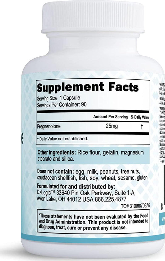 Dr. Dzugan's Advanced Pregnenolone Formula :: Non-GMO, GMP Certified, Gluten Free! :: 25mg 90 Caps :: for Mood, Mental Sharpness, Stress