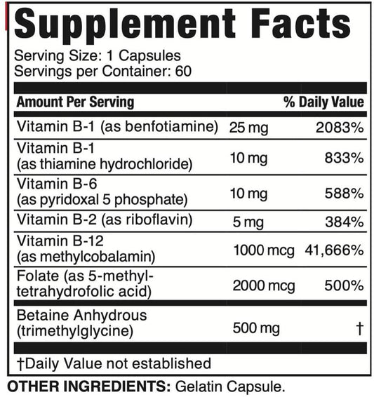 Brain B-Balance | Neuro Balance Formula | with 5-MTHF, B12, Benfotiamine, Trimethylglycine, and P5P | 60 Servings