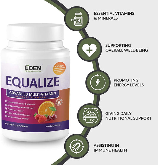 Eden Formulations Equalize Advanced Multi-Vitamin - Complete and Natural Formula for Adults - Essential Vitamins and Minerals - Better Health, Immunity Support, Anti-Aging, Energy Boost- 90 Gummies