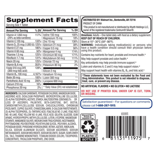 Equate Complete Multivitamin/Multimineral Supplement Tablets, Men 50+, 100 Count