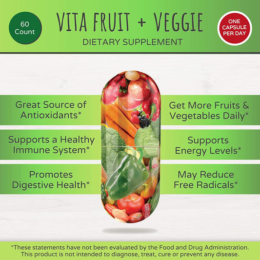 FeelGood Superfoods Vita Fruits and Veggies Dietary Supplement Capsules Made from 25 Superfood Ingredients, 60 Count