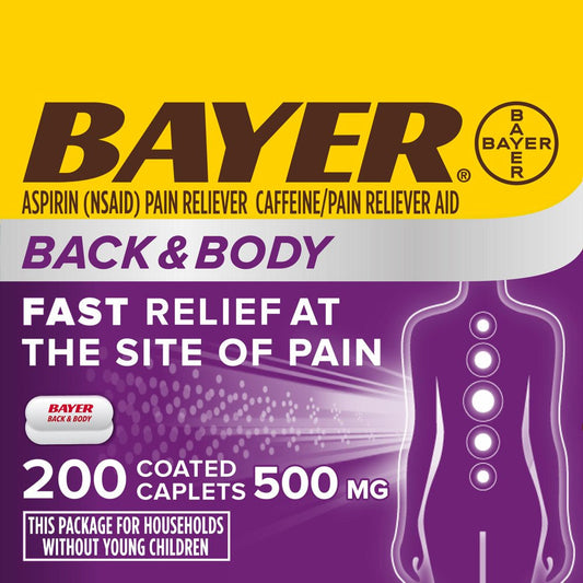 Bayer Back & Body Extra Strength Pain Reliever Aspirin W Caffeine, 500Mg Coated Tablets, 200 Count