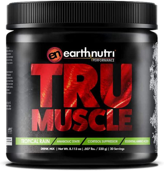 EarthNutri TruMuscle the Muscle Builder with 9 Essential Amino Acids, BCAAs, SerinAid (Phosphatidlyserine), and Mediator (Phosphatidic Acid) - 20 Servings, Tropical Rain