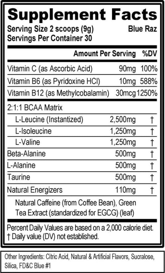 Evlution Nutrition BCAA Energy - High Performance Energizing Amino Acid Supplement For Muscle Building, Recovery And Endurance, 30 Servings (Blue Raz)