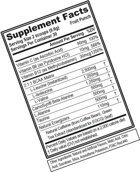 Evlution Nutrition BCAA Energy - High Performance Energizing Amino Acid Supplement For Muscle Building, Recovery And Endurance, 30 Servings (Fruit Punch)