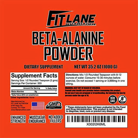 Beta Alanine Powder 1000 Grams - Nitric Oxide Booster by Fit Lane Nutrition - Unflavored.