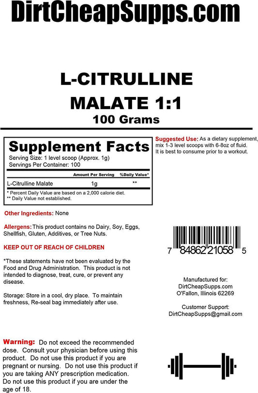 DirtCheapSupps L-Citrulline Malate 1:1 Powder 100g (Unflavored)