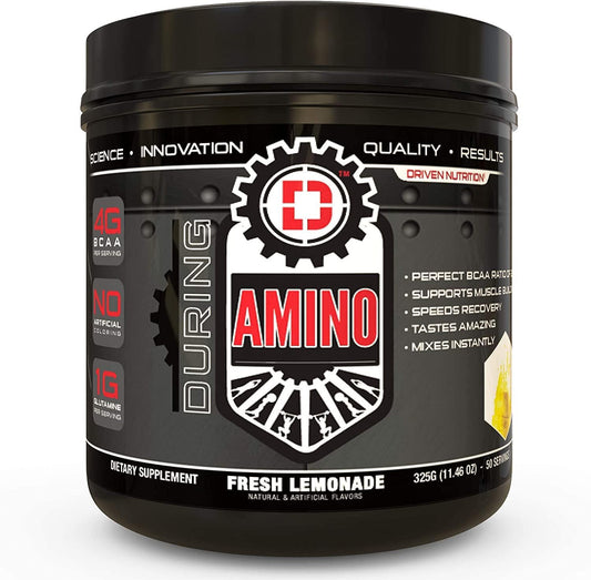 Driven Amino Branched-Chain Amino Acid with Glutamine - 2:1:1 BCAA Ratio, 4g Leucine - Train Harder and Longer - Increase Muscle Mass, Aid Recovery - Low-Carb - Vegan - 50 Servings - Fresh Lemonade