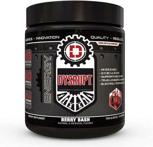 Driven DYSRUPT Pre-Workout Powder - BCAAs, Caffeine and Electrolytes - Low Carb/Sugar Free Energy Drink Supplement - Increases Fat Burning, Physical, and Mental Endurance for Focus and Building Muscle Mass