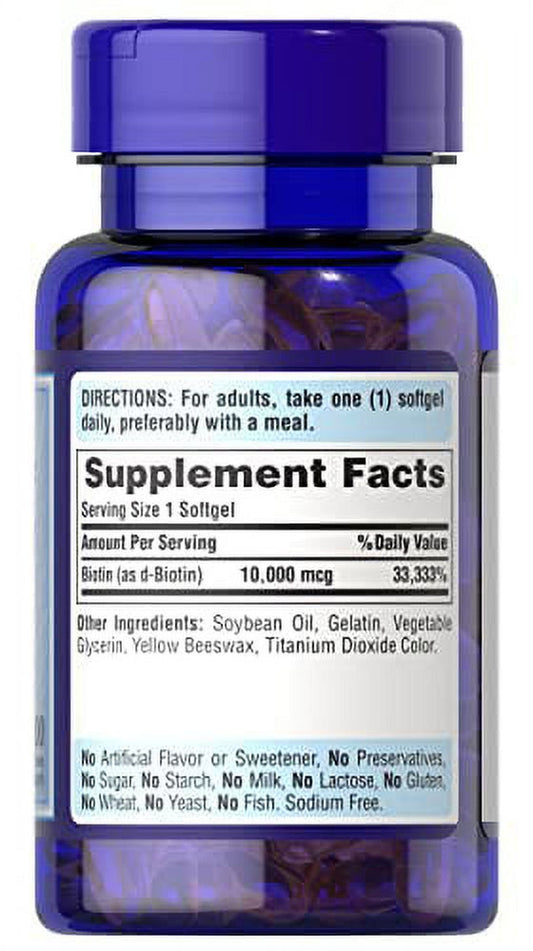Biotin 10000 Mcg, Helps Promote Skin, Hair and Nail Health, 100 Count by Puritan'S Pride