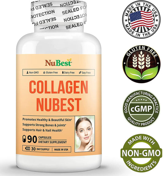 Collagen NuBest 90 Capsules Beauty Skin Formula, Promotes Hair and Nail Health with Hydrolysate Collagen (Pack of 1)