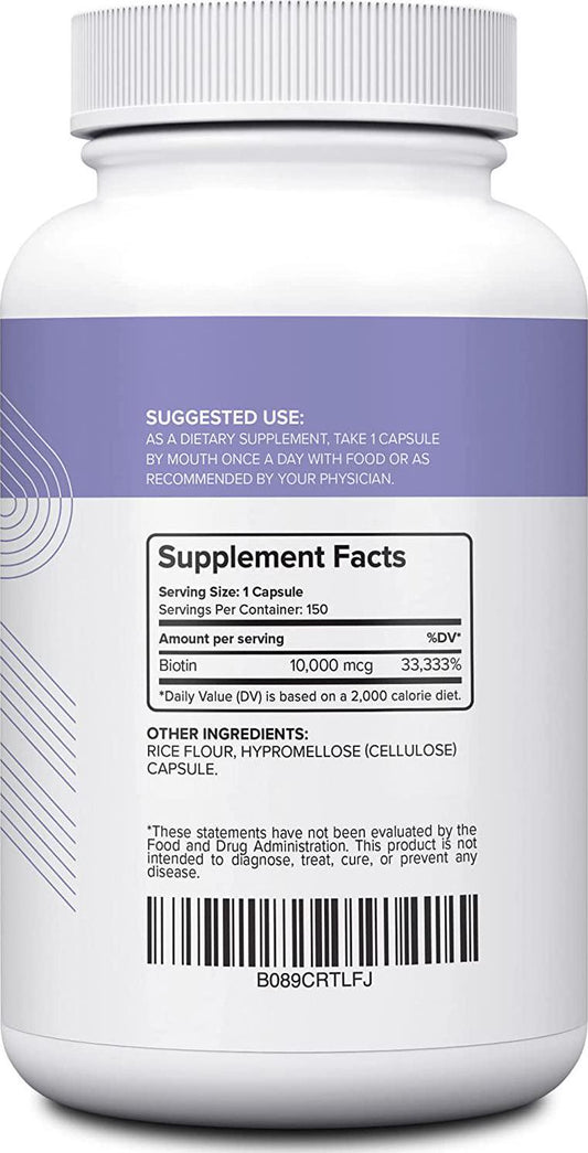 Biotin 10000mcg | 150 Capsules - Nui Nutra Pure Biotin Supplement Extra Strength (Vegan, Gluten Free, Non-GMO, Lab Tested) - Biotin for Hair Growth Skin and Nails