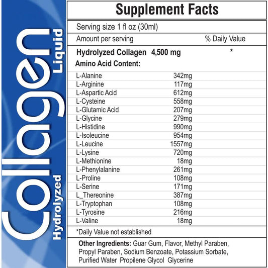 Collagen Hydrolyzed + Vitamin C Liquid Protein Formula - Hair,Skin and Nails(4500 mg.-16 oz) Better Absorption Than Powdered Collagen -