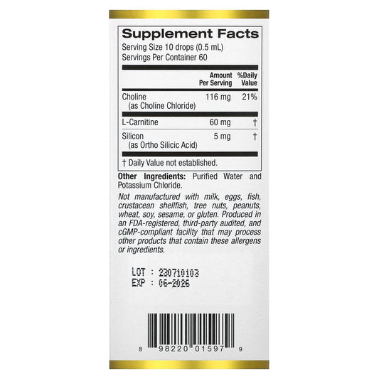 California Gold Nutrition Choline Silica Complex, 1 Fl Oz (30 Ml)