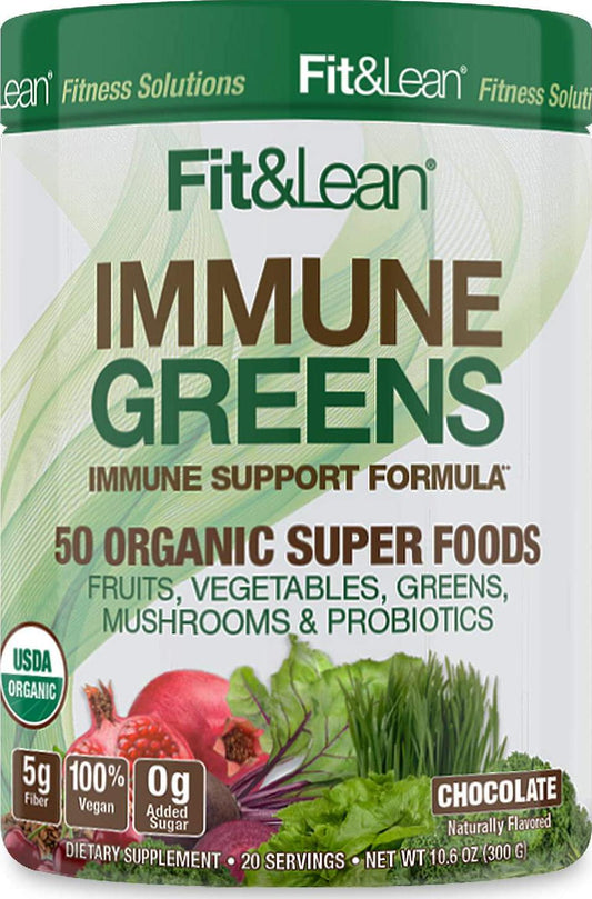 Fit and Lean Immune Greens Powder, Organic, Super Food, Non-gmo, Natural, Vegan Shake, Chocolate 10.6oz