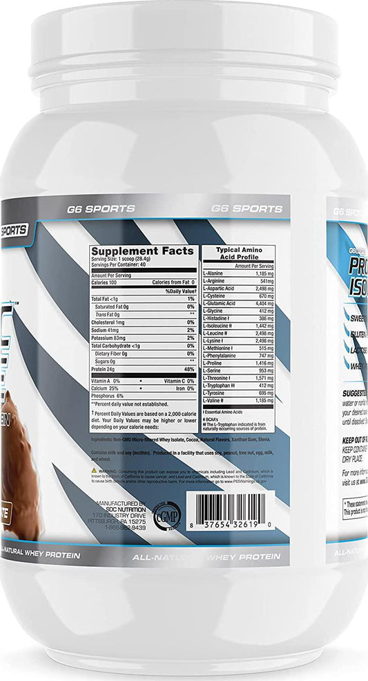 G6 Sports Nutrition Prolific Isolate All Natural Whey Protein Isolate (Gluten Free, Lactose Free, Stevia Sweetened, 25g Protein, 100 Calories) 2.5lb Jar Chocolate