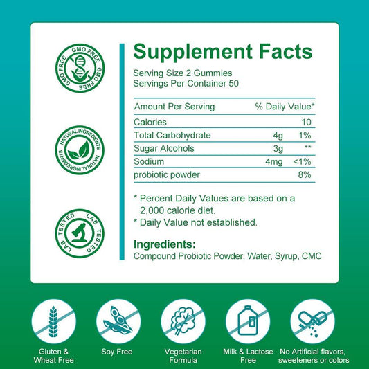 (2 Pack) Probiotic Gummies, Natural Flavor Probiotic Gummy Dietary Supplement for Kids/Adults 100 Count, Promotes Gut Digestive Health and Immune System, Non-GMO Gluten-Free Organic Vegan