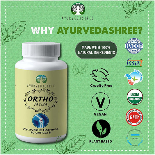 AYURVEDASHREE Ortho Vatika 60 Caplets | Ortho Herb | Orthoherb | Boswellia Serrata Herb | 60 Caplets of 1000 MG | Each 1000 MG Caplet Contains Extract of 8 Natural Herbs and Omega-3