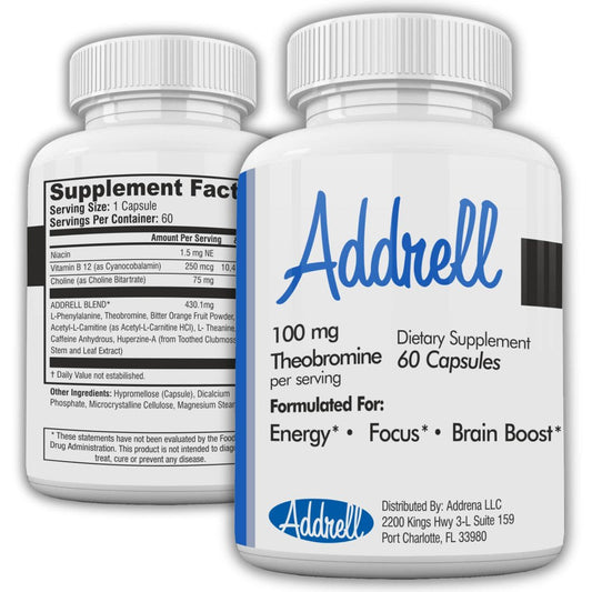 Addrell Energy Stimulant Dietary Supplement Designed for Brain Boosting- 60 Natural Pills