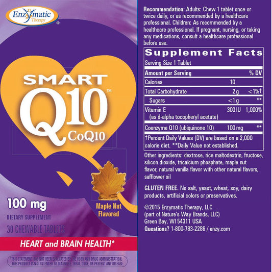 Enzymatic Therapy Smart Q10 100 Mg Chewable Tablets, Maple Nut, 30 Ct