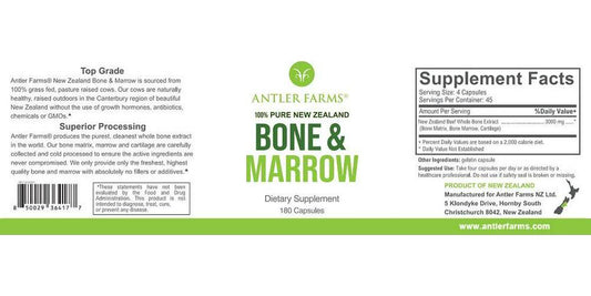 Antler Farms - 100% Pure New Zealand Bone and Marrow, 180 Capsules, 750mg - Grass Fed, Pasture Raised Whole Bone Extract, Healthy Essential Fats, Stem Cells, Collagen, Calcium, Phosphorus and Minerals