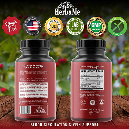 Blood Circulation Supplement by HerbaMe, 120 Capsules, Helps Reduce Spider and Varicose Veins, Supports Vessels, Leg and Cardiovascular Health with Niacin, L-Arginine, Ginger, Cayenne Pepper, Diosmin and Hawthorn
