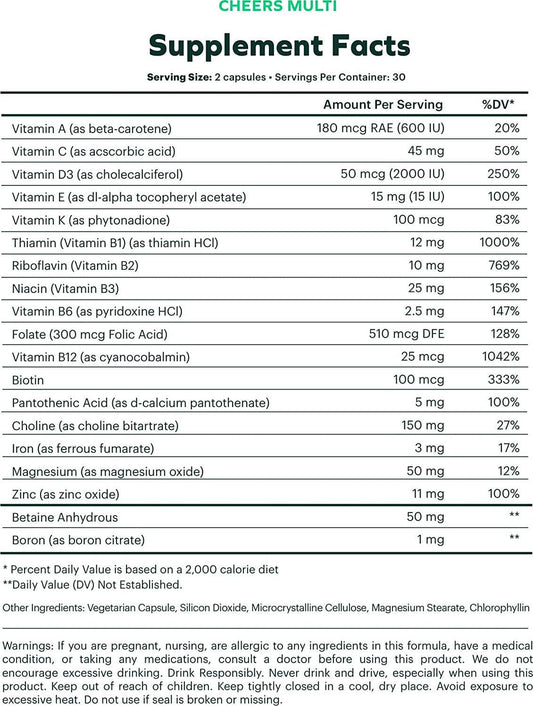Cheers Multi | Daily Multivitamin for Drinkers | 60 Doses | Betaine, Niacin, Choline Additional Drinkers Care for Replenishing Vitamins and Supporting Overall Health (2)