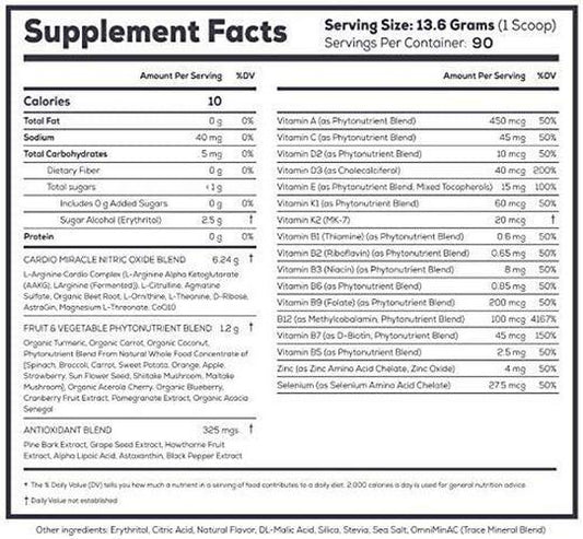 Cardio Miracle (TM) - The Complete Nitric Oxide Solution - Nutritional Heart Healthy L-Arginine and Organic Beetroot Drink Mix (Stevia) 90 Servings
