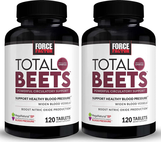FORCE FACTOR Total Beets Blood Pressure Support Supplement with Nitrates and Grapeseed Extract to Boost Nitric Oxide, Circulatory and Cardiovascular Vasodilator Heart Health Vitamins, 240 Count, 2-Pack, White