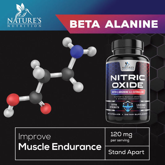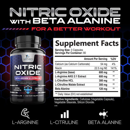 Extra Strength Nitric Oxide Supplement L Arginine 3X Strength - Citrulline Malate, AAKG, Beta Alanine - Premium Muscle Supporting Nitric Booster for Strength & Energy to Train Harder - 60 Capsules