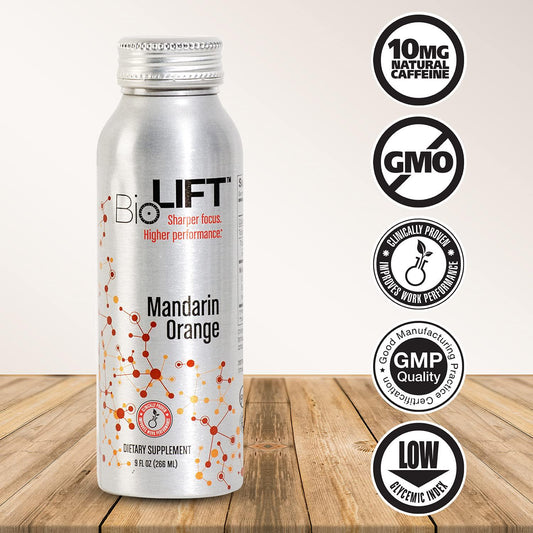 BioLift Healthy Energy Drink, Patented Botanical Formula- Clinically proven to Improve Performance and Focus, Nootropic Brain Booster-All Natural, Safe, Low Caffeine, No Jitters, No Crash, Mix Flavour, 9Fl Oz (Pack of 6)