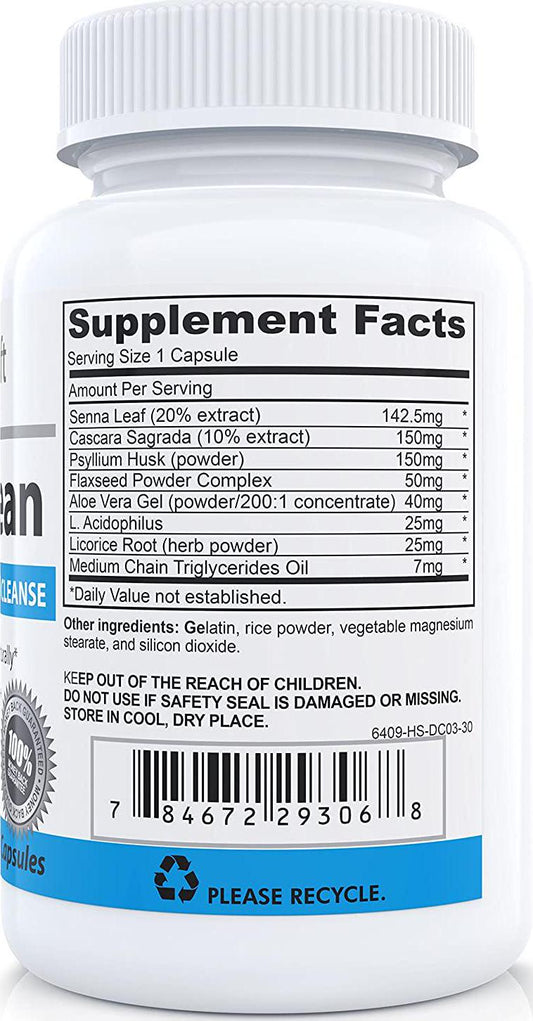 ColonClean #1 Herbal Colon Detox and Laxative Supplement for Weight and Constipation Relief | Advanced Intestinal and Bowel Sweep with Senna, Cascara Sagrada, Psyllium, MCT, Aloe and Probiotics | 30 Capsules