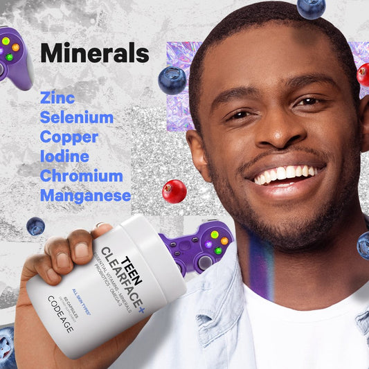Codeage Teen Clearface, Vitamins A, C, D3, E, Pantothenic Acid, Niacin, Zinc, Probiotics, Omega-3, 60 Ct