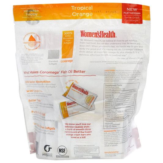 Coromega Omega 3+D Dietary Supplement Squeeze Packets, Tropical Orange Flavor, 90 Ct