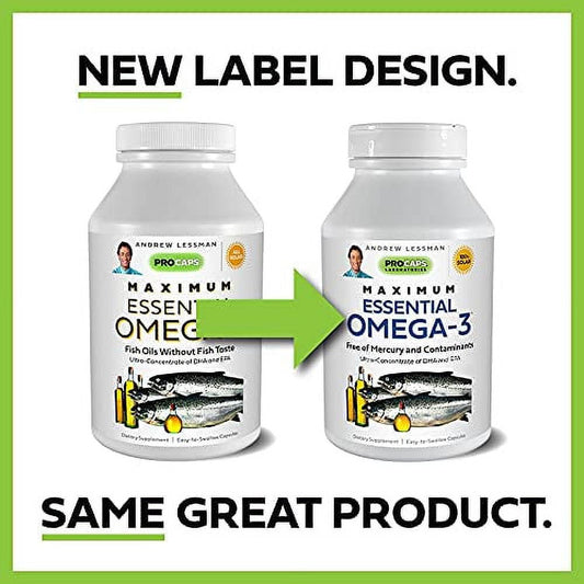 Andrew Lessman Maximum Essential Omega-3 Unflavored 360 Softgels - Ultra-Pure, High Potency Omega-3 Oils. High DHA, No Stomach Upset, No Contaminants, No Mercury. Small Easy to Swallow Softgels