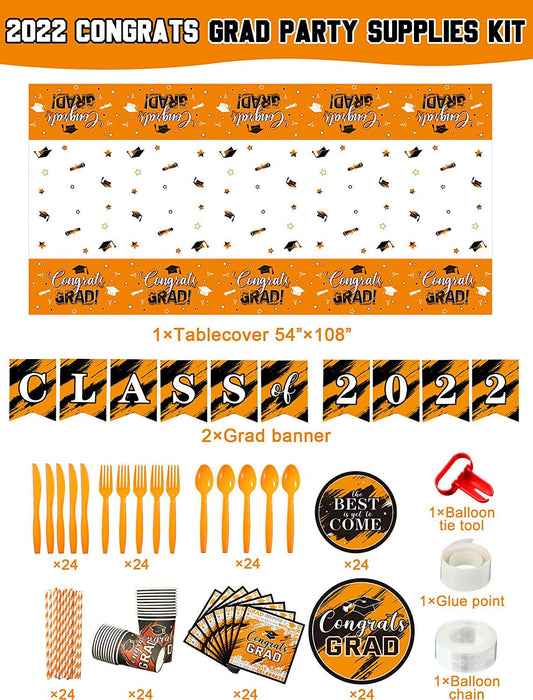 294 Pieces Graduation Party Supplies Set, Class of 2022 Graduation Decorations, Including Graduate Tableware Paper Plates Napkins Cups Plastic Tablecloth Banner Balloons Hanging Swirls (Orange)
